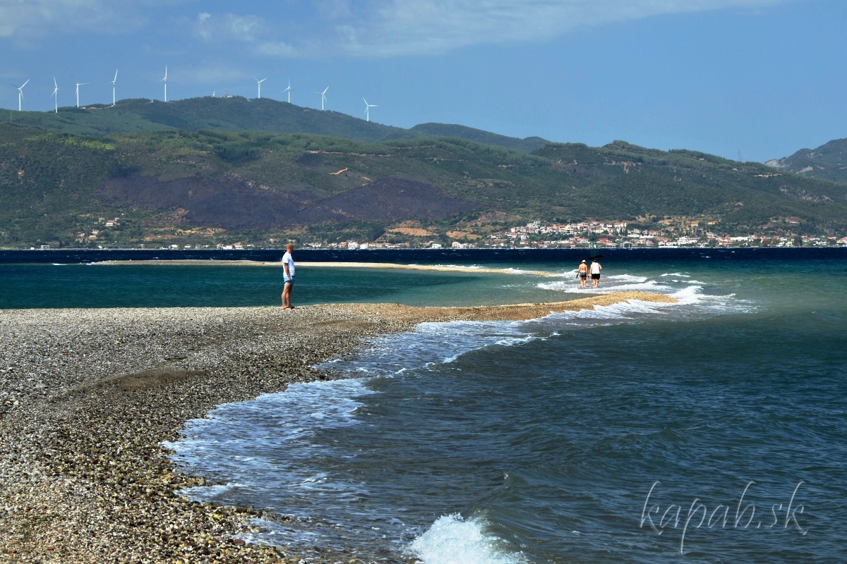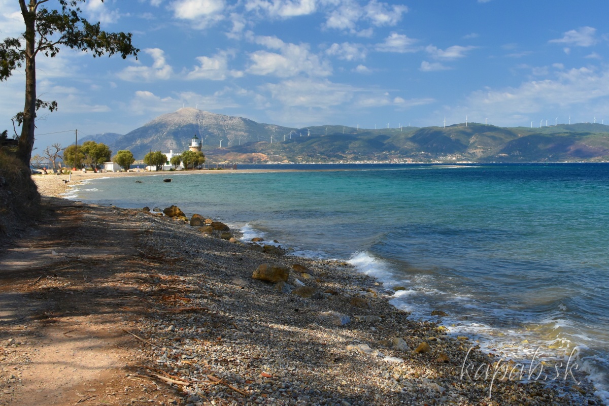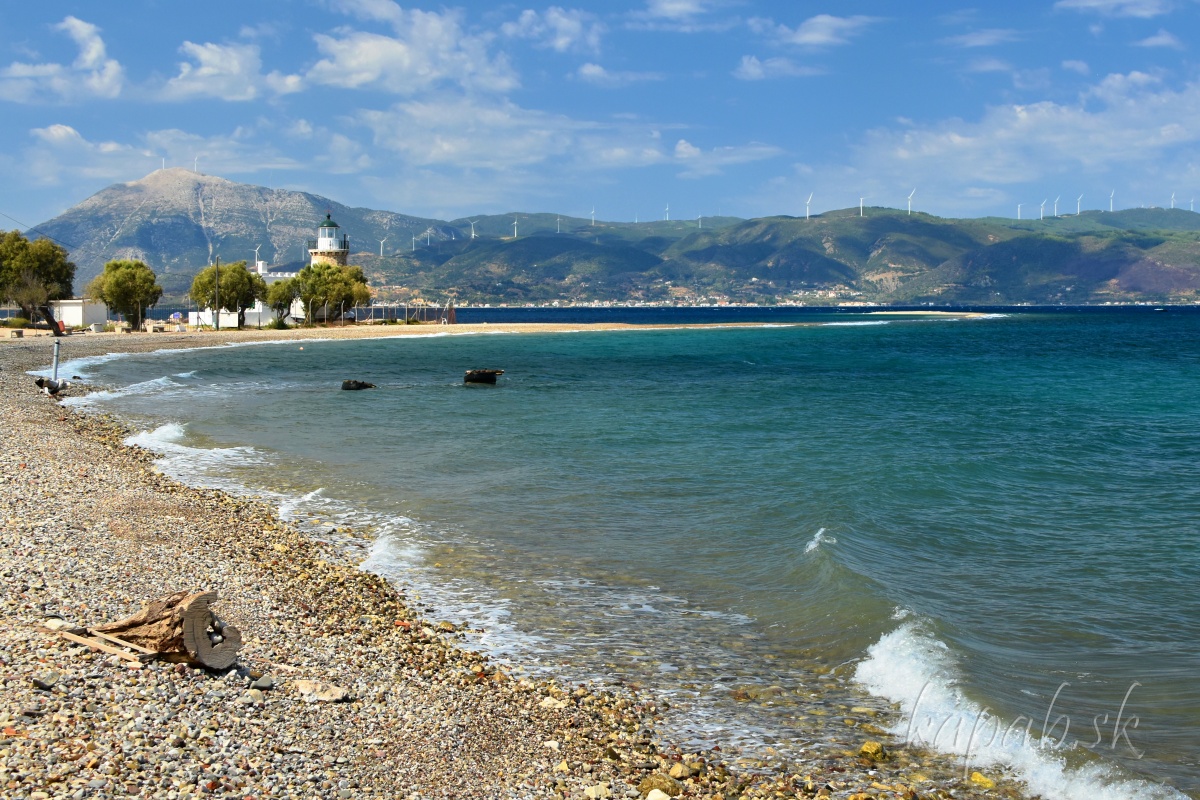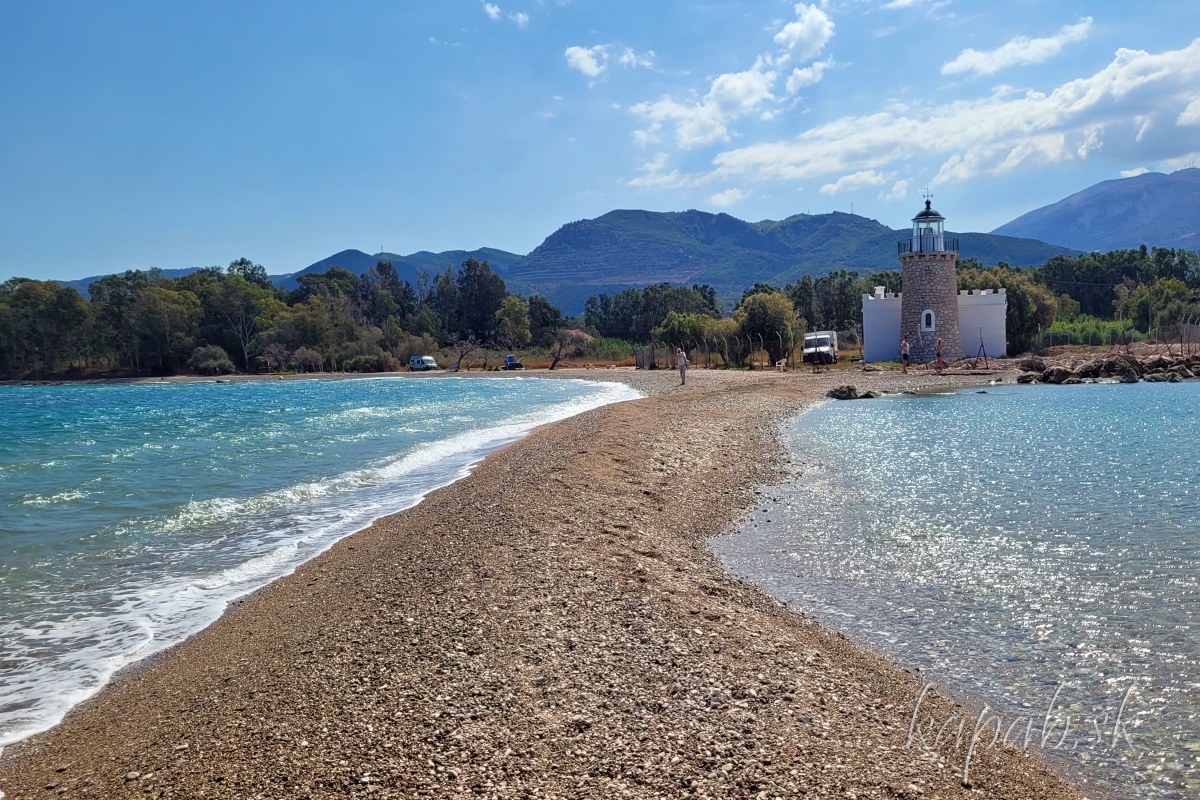 Mys Drepano sa na nachádza desať kilometrov na východ od pevnosti Rio. Charakterizuje ho maják, ktorý postavili v roku 1880, malá kamienková pláž a kosa. Kosou sa nazýva výbežok do mora tvorený nánosmi okruhliakov. Trochu nám pripomínal výbežok pri plážach Epanomi-Potamos neďaleko Thessaloník.