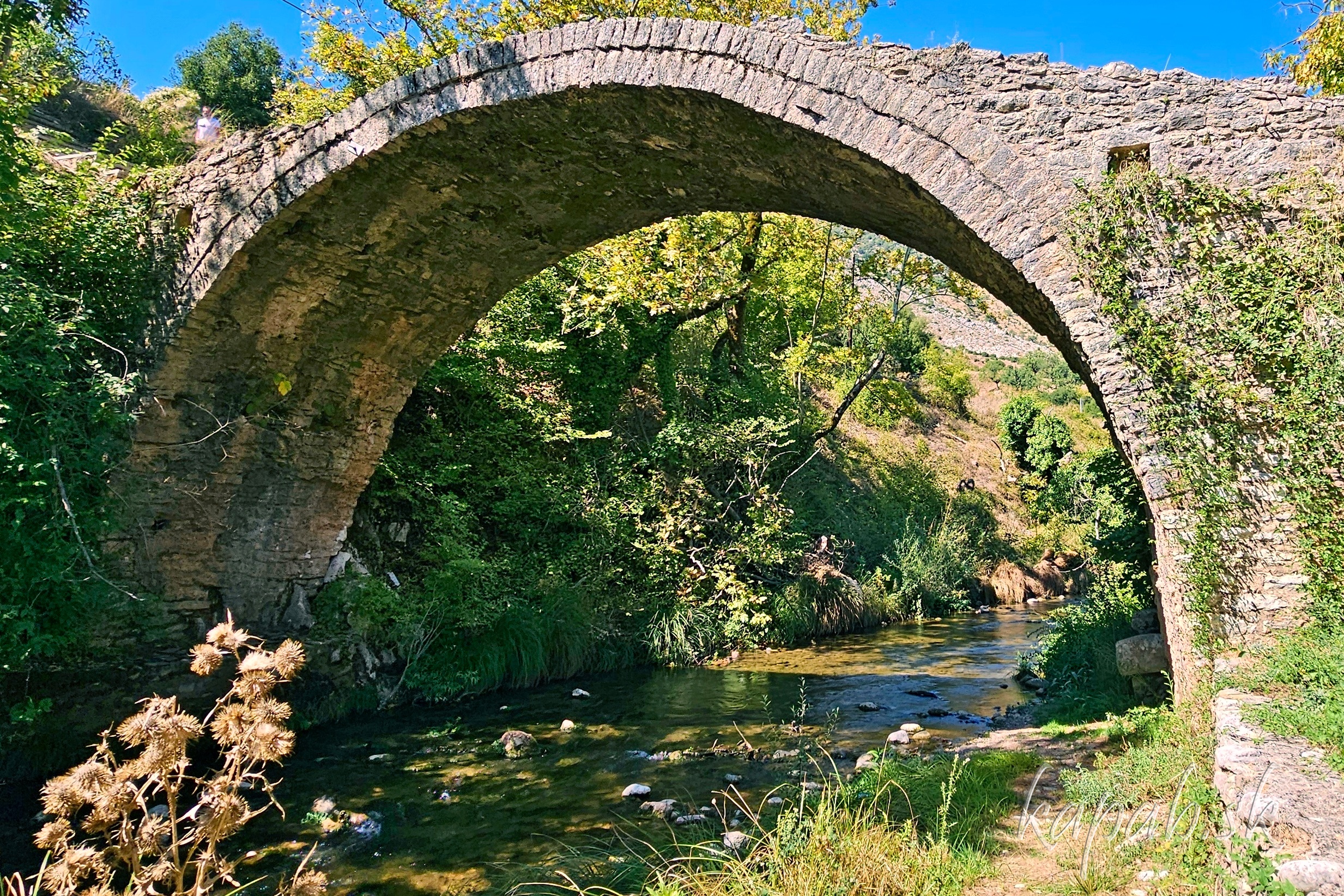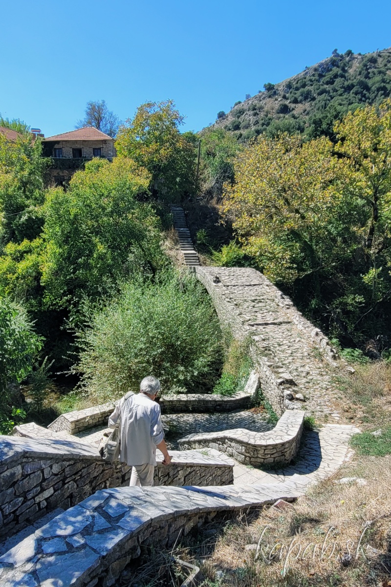 Dedinka Tripotama leží takmer v srdci Peloponézu, kde sa zbiehajú tri rieky (tria potamia v gréčtine znamená tri rieky). Ak máte radi staré mosty a náhodou budete prechádzať okolo Tripotamy, určite sa zastavte. Stojí tam historický jednooblúkový kamenný most, ktorý miestni nazývajú aj ako Ibrahimov most. Klenie sa ponad priezračnú rieku Erymanthos. Prechádzka k mostu nám na našej dlhej ceste padla vhod. Most je voľne prístupný.